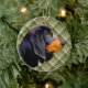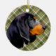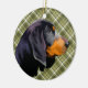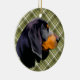 BLACK & TAN COONHOUND WITH GREEN PLAID PATTERN CERAMIC ORNAMENT