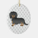Black & Tan Long Hair Dachshund Cartoon Dog & Text Ceramic Ornament