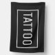 Tattoo shop sign flag. Simple white on black flag with a frame.