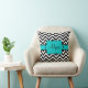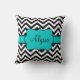 Show off your style in a fun way with this black and teal blue chevron personalized pillow.