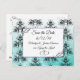 Classy black and teal damask Save the Date Postcards to give people a head's up on your wedding.