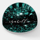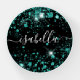 A classic black background. Decorated with teal, sea green faux glitter dust. Personalize and add your name. The name is written with a modern hand lettered style script with swashes.