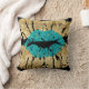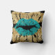 Black Teal Gold Glitter Kiss Lips Metallic Glam Throw Pillow