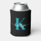 This simple, elegant black can cooler with your first name in a trendy script font in white and your first initial in a modern cap font in teal is perfect for you. It's stylish and trendy and yet very classic. Get a bunch for when you're entertaining. Guests will be able to keep their drinks nice and cold.