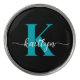 These simple, modern golf ball markers with your first name in a trendy script font in white and your first initial in a modern cap font in teal on black are perfect for you. They're stylish and trendy and yet very classic. They're unique - like you!