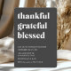 The powerful words thankful, grateful, blessed embody the true meaning of the season, while the clean black-and-white contrast adds a sophisticated edge. Fully customizable with your event details, this invitation sets the perfect tone for a meaningful holiday meal.