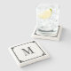 Black Thin Greek Key Border Monogram Stone Coaster