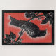 black thrush with red jigsaw puzzle
