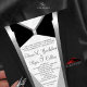 Make a statement of timeless sophistication with this tuxedo-inspired wedding invitation. Set against a pearl gray damask with silk-style trim, the design features a striking red silk peak fold pocket and a diamond love knot monogram symbolizing unity. The front reveals a refined tuxedo bow with diamond buttons on a rich black damask background or, with a second glance, the graceful silhouette of a martini glass with a diamond stem, blending classic elegance with a hint of modern flair. Perfect for black-tie affairs, glamorous soirées, or couples who love a touch of sparkle and sophistication.