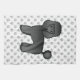 Destei's original cartoon illustration of a cute black coat color Toy Poodle breed dog. The background has a pattern of gray dog paw prints.
