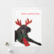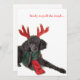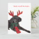 Black toy poodle with reindeer antlers holiday card