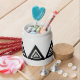 This white porcelain candy jar is decorated with an elegant black and white geometric design of five nesting triangles.