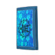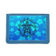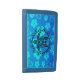 Black tribal Polynesian tattoo style turtle design in the center of a Maori sun symbol. Ocean blue Hawaiian pattern background of Hawaiian Honu sea turtles and hibiscus flowers.
