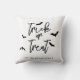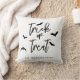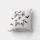 Bring Halloween spirit into your home with this stylish pillow featuring Trick or Treat in elegant black script typography with bat silhouettes on a crisp white background. Beneath the design is a personalizable text area, perfect for adding your family name or a custom message. The minimalist black-and-white design makes it a versatile seasonal accent that pairs easily with any decor, ideal for living rooms, bedrooms or Halloween parties.