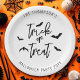 Celebrate Halloween in style with these festive paper plates featuring the phrase Trick or Treat in sleek black script typography. Bat silhouettes add a playful touch and the top and bottom personalizable text areas let you add any family name or custom message, such as Halloween Party 20YY. Perfect for Halloween gatherings, parties or seasonal entertaining, these minimalist yet festive plates make your event memorable with a modern and stylish look.
