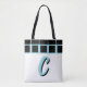 Tote. Modern & Contemporary. Black and Turquoise Geometric Squares. Initial. Monogram. Bridesmaid gift. Gift for her.