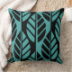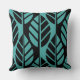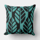 A turquoise throw pillow is decorated with a modern black leaves pattern. The background color determines the pillow color. #colorityourway by customizing the fill color.
