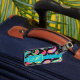 Identify your baggage, backpack, or computer bag with this fun and stylish luggage tag. You will enjoy this bold splash of color with this luggage tag featuring a whimsy paisley design that is personalized with your monogram, initials or name. The bold colors of this trendy paisley design pops on a black background background with a turquoise teal blue emblem for personalization and to add your contact information on the back side. Bright, fresh, modern paisleys make a beautiful artistic design that includes inspirational words of Love, Hope, Faith, Inspire, Cherish, Be Happy, Dream, and Live in the background between the paisleys. This Mod Paisley collection, designed by Phyllis Dobbs, uses the colors of teal, turquoise, lime green, wine, yellow, fuchsia and orange to create a fun and whimsey take on the traditional and popular paisley motif. The paisley motif is timeless in appeal but this original art is both trendy and contemporary. Fully customizable for personalization with your own words to add your own message.