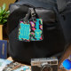 Black Turquoise Modern Paisley Pattern Monogram Luggage Tag