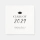 Modern typography class of 2025 and graduation cap in black and white, elegant and fun, great personalized napkins for graduation party.