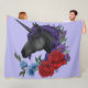 Black Unicorn Flowers Purple Fleece Blanket