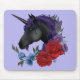Black Unicorn Flowers Purple Mouse Pad