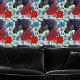 A black unicorn with purple and red flowers against backdrop of sage green