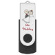 Black USB Flash Drive/Our Wedding with Bride and Groom/Make your file transfers a breeze with a customizable USB swivel flash drive. Featuring a swivel cap to keep the USB port protected and accessible, a top notch for easy attachment to key, and a custom design with your photos, text and more, this USB drive will be your best companion. Great for students, businesses, or just to have around the house! Choose from 8GB, 16GB, 32GB or 64GB to suit any practical USB needs. Dimensions: 2.28” x 0.78” x 0.4”. Features a 360-degree swivel to protect the USB connector when not in use. USB 3.0 provides a blazing fast read and write speed when used with USB 3.0 enabled computer or device – transfer speeds are typically 10x faster allowing for quick and easy file transfer for videos and other large files. USB 2.0 compatible. 2 clip colors. 10 body colors. Choose from 8GB, 16GB, 32GB, and 64GB.