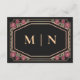 Make a bold statement of eternal love. This gothic wedding RSVP features a frame and your monogram, adorned with thorns, roses, and rose gold accents against a black background. Perfect for a hauntingly romantic celebration! Personalize the text, font, and background color to suit your design preferences. Matching Items in our shop for a complete party theme. Please note that the rose gold on the invitation is NOT real foil and is printed in flat colors.