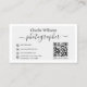 Elevate your professional network with our custom-designed photographer's business card. Centered with an artistically rendered green camera, this card captures the essence of your photographic passion and positions you as a standout creative. The elegant typography and personalized details underscore your professional identity, while the included QR code offers a modern, easy connect-and-explore option for potential clients. Ideal for photography professionals eager to leave a lasting impression, this business card blends functionality with distinct style, ensuring your contact information is not just shared, but remembered.