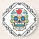 Black Vintage Frame & Rose Sugar Skull Coaster