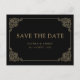 Islamic Muslim Wedding Save The Date postcard. This is an elegant, vintage announcement card design with a black background. There is a gold baroque design for the border. You can customize the fonts and change all the text on the front and the back of the card. Contact designer to request more products in this collection.