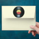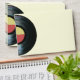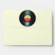 This envelope features a music themed design with an illustrated black vinyl music record and a center label in yellow and red on the front and back flap.