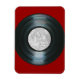This custom photo magnet provides a memory of the days of vinyl records with a black vinyl record from the era of the record player on its surface. The disk's surface is black with light reflected off the spiral groove and in the center there is space for a personal photo or image.