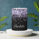 Black violet lavender glitter sparkle name pillar candle