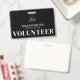 The design features clean and easy-to-read typography, ensuring clear identification. The background and text colors can be customized to match your organization's branding or event theme. Whether for short-term events or ongoing volunteer programs, this badge provides a polished and functional way to recognize those giving their time.