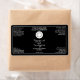 A label for cosmetics and/or soap products with a black background and white text. This label contains space for your logo, product name, business name, product weight, ingredients, instructions, social media, and business address. This label measures 3.75 inches by 2 inches (95 mm by 51 mm) and is suitable for bottles with a diameter of 1.2 inches (31 mm) or more such as 4 oz (120 ml) bullet, cylinder, and boston round bottles. It can also be used for cosmetic jars and other types of cosmetics packaging.