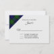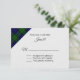 Scottish highland themed wedding response card done in a textured look, with the classic blue, black and green Black Watch tartan pattern, in the upper left corner and covering the backside. Personalize the text to suit your wedding needs. Matching products are available.