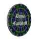 Great looking custom dart board done in the traditional blue and green Black Watch Scottish tartan plaid. White old world style text is ready to personalize for yourself or as a great gift idea.
