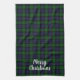 Handsome green and blue black watch tartan plaid is a classic choice for a kitchen towel. Featuring “Merry Christmas” message.