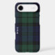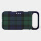 Handsome Samsung Galaxy S7 Case done in the dark blue and green Black Watch tartan plaid. Personalize the white text, running down the left side, for yourself or as a great gift idea. Stylish way to protect your electronic device.