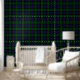 Traditional Celtic black watch tartan plaid patterned peel and stick wall paper in lush green and black. Create a warm and library chic atmosphere with this brilliant tartan patterned wallpaper.