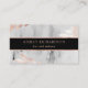 This elegant and glamorous business card features a modern gray and black watercolor background, with faux rose gold leaves and a bold, black center.