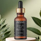 This waterproof dropper bottle product label features a black background with white text. This label measures 2.6 inches by 1.5 inches (66 mm by 38 mm) and is a great choice when you are looking to package essential oils, fragrance oils, beard oils, face serums, hair serums, and products requiring a durable label.