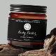 A waterproof jar label for cosmetics and/or soap products with a black background and white text and space for your logo. Customize it with your business and product information. This label measures 8 inches by 2.125 inches (203 mm by 54 mm) and is suitable for jars with a diameter of 2.55 inches (65 mm) or more and a label height area of at least 2.125 inches (54 mm). Most 8 oz (240 ml) and 16 oz (480 ml) jars fit this description, but check the jar specifications to be sure. This label makes a great choice for packaging beauty products that require larger labels like sugar scrubs, body butters, and thick lotions and creams.
