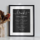 This elegant wedding bar menu poster features a clean black background with modern calligraphy and classic typography. The structured layout makes drink options easy to read while adding a refined accent to the reception bar. Perfect for classic, modern, minimalist, black tie, or evening weddings. This drinks sign complements formal celebrations and timeless wedding decor. Available as both a printed poster and a digital download.