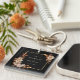 Give your guests a memorable keepsake with the Black Wedding Keychain featuring the Bride and Groom's Names from the "Fall Black Terracotta Floral and Leaves Wedding Invitation Collection." This beautifully designed keychain showcases the stunning fall leaves and floral pattern, making it a stylish and personalized favor that your guests will cherish. Personalize yours now to provide a lasting memento of your special day!