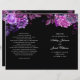 Black wedding program folded. Purple flowers