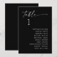 This wedding seating chart card is designed to display guest names for each table in a clear and organized way. Instead of one large seating board, each table has its own card, helping guests quickly find their place without confusion. The layout keeps the table number and guest list easy to read, making it both functional and visually clean. This format works especially well for receptions where you want a more seamless and intuitive seating experience. The black background paired with crisp white text creates a bold, high contrast look that feels modern and refined. It adds a polished touch to your tables while maintaining a minimal, structured design. A great choice for formal, modern, and black-tie weddings where clarity, organization, and a sophisticated aesthetic are key. Available as both a printed card and a digital download.