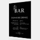 Modern wedding signature drinks bar menu features the Bride and Groom's signature drinks and room for additional drink choices.